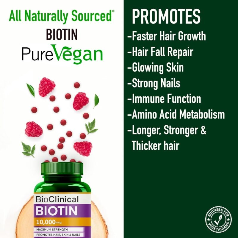- Benefits: Biotin, also known as vitamin B7, is essential for hair strength and growth. It helps convert nutrients into energy and plays a key role in the health of hair, skin, and nails. Biotin deficiency can lead to thinning hair and hair loss.