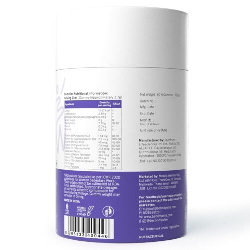Be Bodywise Biotin Hair Gummies are formulated to promote stronger, shinier hair and healthier nails. Packed with Biotin, Zinc, Folic Acid, Fibre, and Multivitamins, these strawberry-flavored gummies offer a tasty and effective way to meet your daily nutritional needs for hair and nail care. Designed to support overall wellness, these gummies are free from added sugar, making them gut-friendly and suitable for long-term use.