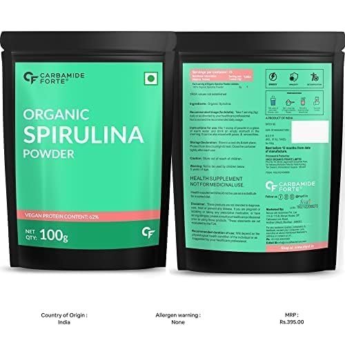 Carbamide Forte 100% Organic Spirulina – USDA Certified Organic Spirulina Powder for Immunity, Energy, Digestion & Skin Health | Plant Based Protein Superfood – 100g Veg Powder