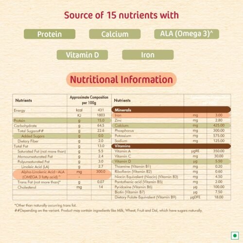 - Wholesome Ingredients: Made with Ragi (finger millet) and real apple, offering a nutritious blend of grains and fruit.