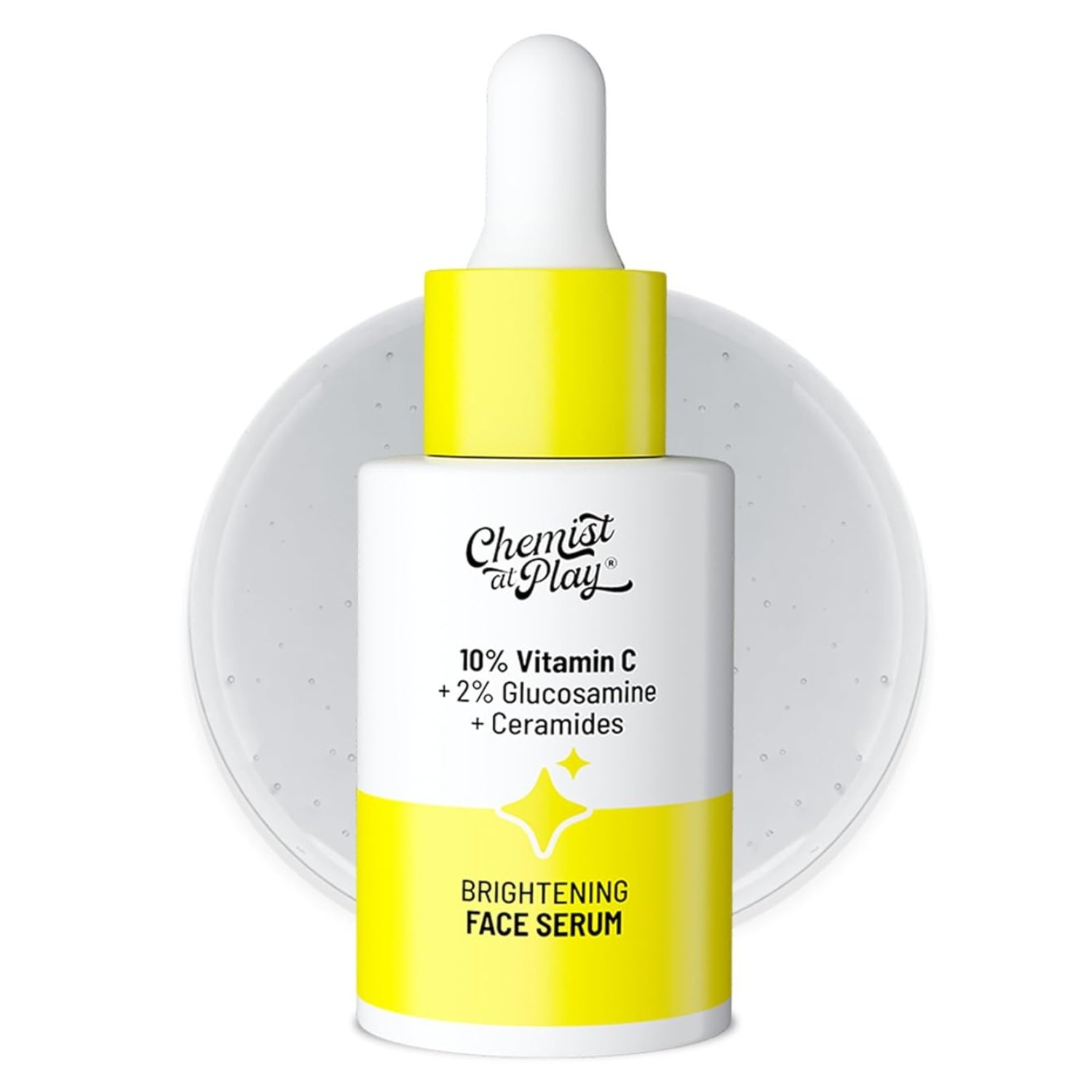 Chemist At Play 10% Vitamin C Face Serum |Brightens & Gives Glow |Fades Dark Spots |Treats Hyperpigmentation| Balances Melanin Production | Ethyl Ascorbic Acid & Glucosamine | For All Skin Types 30ml