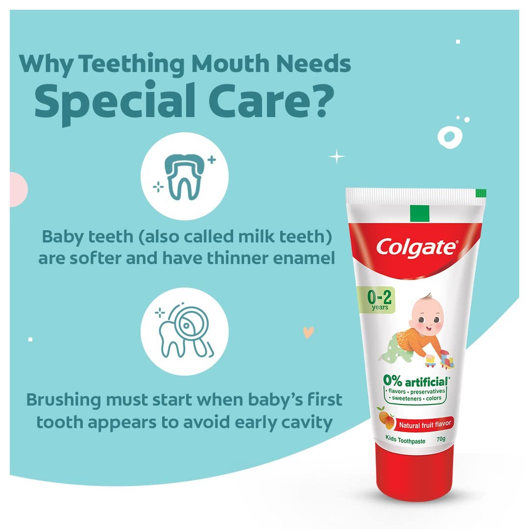 Colgate Toothpaste For Kids Cavity Protection (0-2 Years), Natural Fruit Flavour Tooth Paste, Sls & Fluoride Free – 70G Tube
