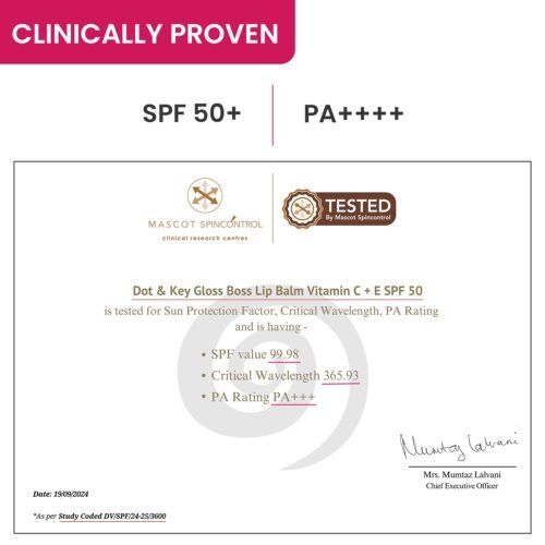 DOT & KEY Cherry Lip Balm is a nourishing, tinted lip balm designed to provide intense hydration and a glossy finish. Enriched with Shea Butter, Vitamin E, and Vitamin C, it protects, softens, and rejuvenates your lips, making it ideal for daily use. With SPF 50, it also guards your lips against harmful UV rays, preventing darkening and damage.