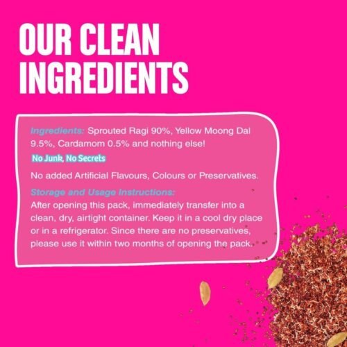 - Natural & Pure: Made with sprouted ragi and no added preservatives or harmful chemicals.