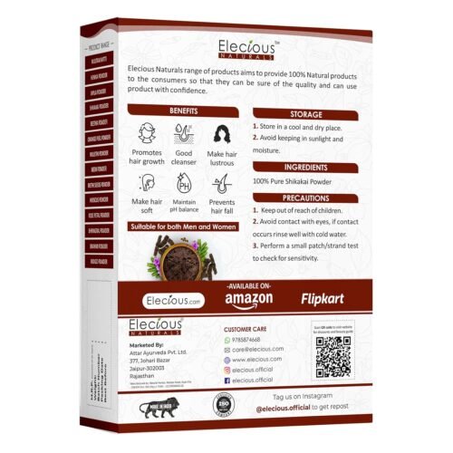 Product Overview: Elecious 100% Shikakai Powder is a natural and effective hair care solution that promotes healthier hair. Free from harmful chemicals like SLS and Parabens, this pure Shikakai powder acts as a gentle hair wash, cleansing your hair while maintaining its natural moisture. Ideal for all hair types, it nourishes the scalp and strengthens the hair, leaving it soft, shiny, and manageable.