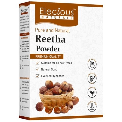 Elecious Pure Reetha Powder is a natural and gentle cleanser for hair, skin, and face. Known as Soapnut Powder, it is rich in saponins, making it a perfect alternative to chemical-based shampoos and face washes. It deeply cleanses, nourishes, and promotes healthy hair growth while maintaining the natural pH balance of the skin.