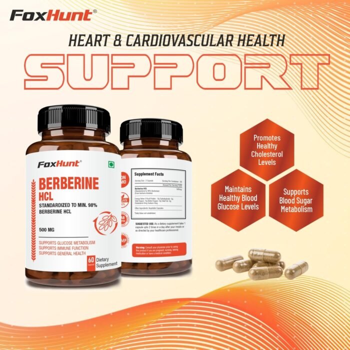 Fox Hunt Berberine Supplements | Berberine HCL 500MG – 98% Highly Purified Supplement- 60 Capsules (Pack of 1)