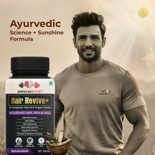 Growfitz Hair Revive+ | Ayurvedic & 100% Natural | Hair Growth, Skin, Nails | For Men & Women – 30 veg tablets
