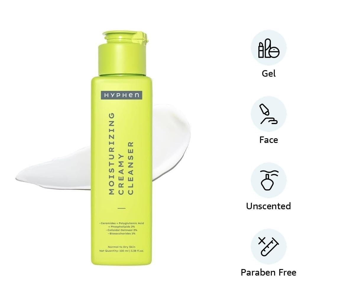 Hyphen Moisturizing Creamy Face Wash for Dry & Sensitive Skin | 2% Ceramides & Polyglutamic Acid | Barrier Repair, Hydration & Gentle Cleansing | Facewash, Oily, Dry, All Skin Types| Face Cleanser for winters | Skin Care Products | Face Care Daily Cleanser For Men & Women – 100 ml