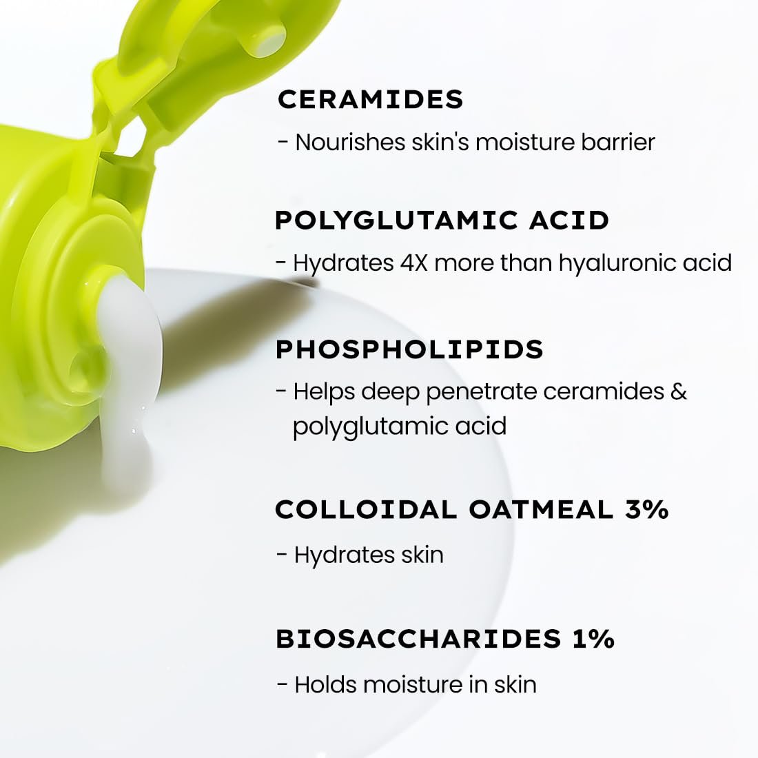 - Hydrates & Moisturizes: The combination of ceramides and polyglutamic acid works together to deeply hydrate and lock in moisture, keeping skin soft and nourished.