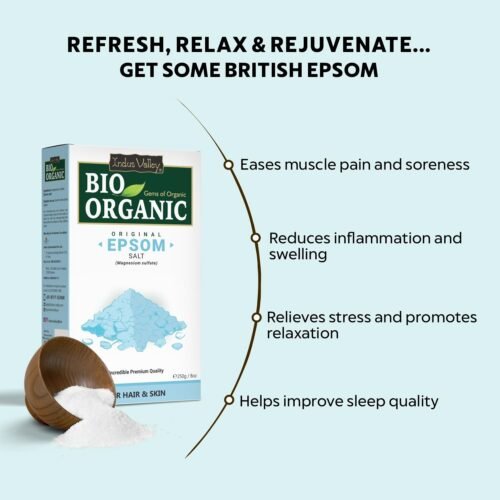 INDUS VALLEY Bio Organic 100% Natural Epsom Bath Salt Crystal And Bath | For Muscle Relief, Relieves Aches & Pain| 250g