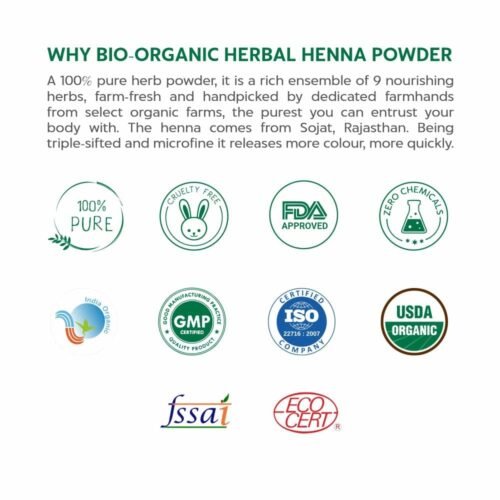 - 100% Organic and Natural: Made from pure, bio-organic henna leaves, free from chemicals, additives, or artificial colors, ensuring a safe and natural product.