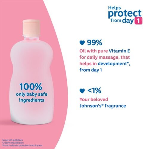Johnson’s Non-Sticky Baby Oil with Vitamin E for Easy Spread and Massage (Clear, 500ml)
