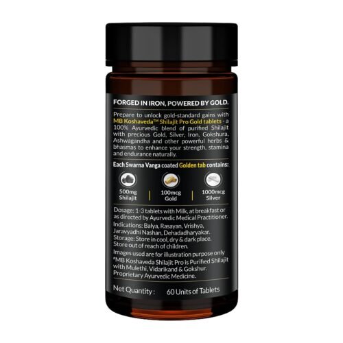 Koshaveda Shilajit Pro Gold by MuscleBlaze (60 Tablets) | Fortified with 24 Carat Gold, Shilajit, Ashwagandha & Gokshura | For Strength, Stamina & Recovery