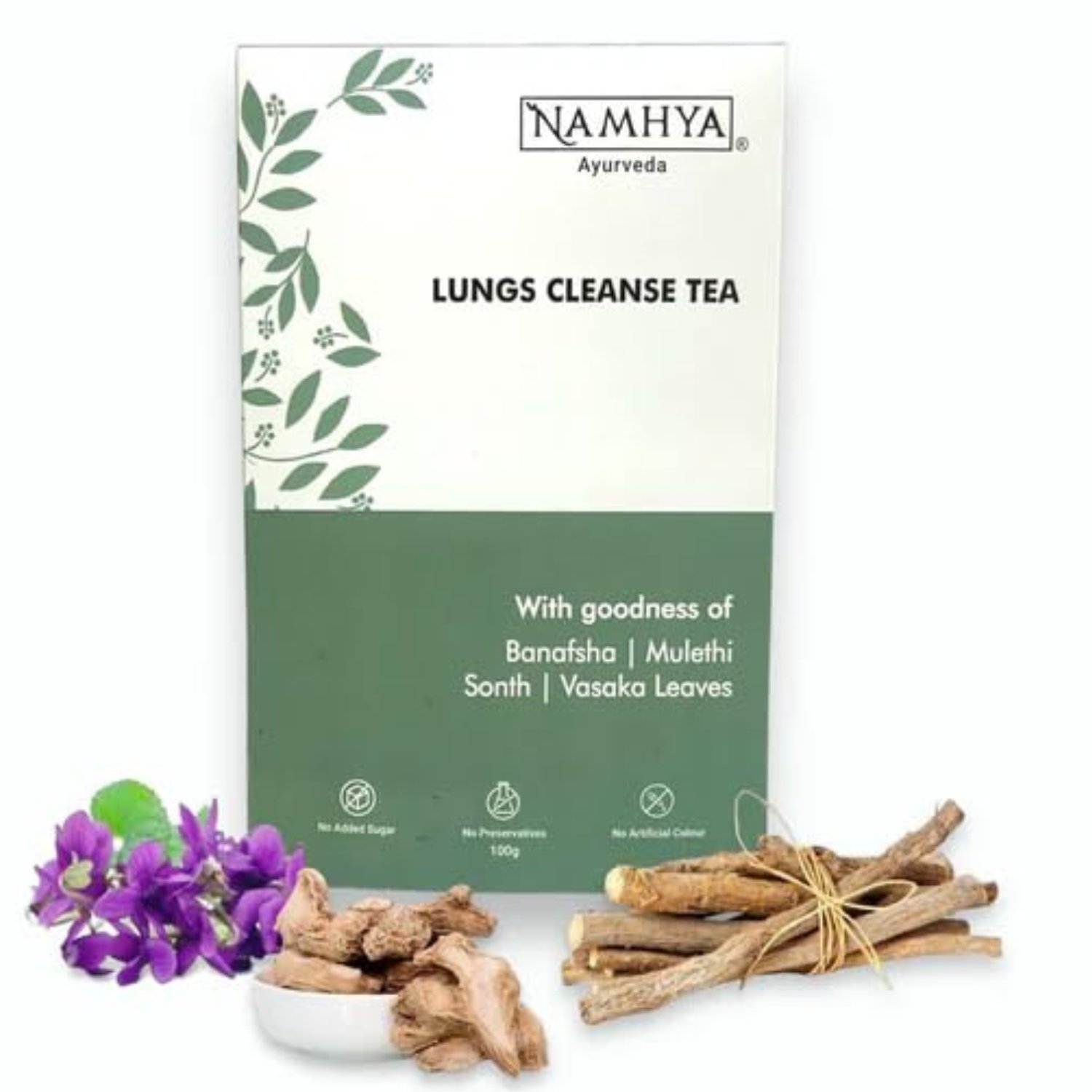 NAMHYA Lungs Cleanse Tea | Herbal Lung Detox tea | Clears Mucous, Boosts Respiratory Health | Natural Ingredients Blend for Lung Cleansing | Anti-Smoking Tea (100g)
