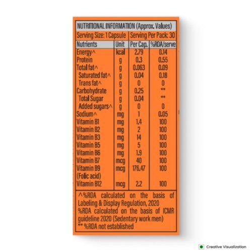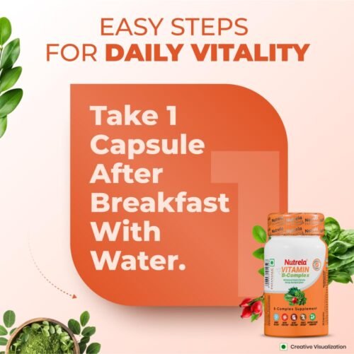 Nutrela Daily Energy Biofermented B Complex for Men & Women – 30 Veg Capsules