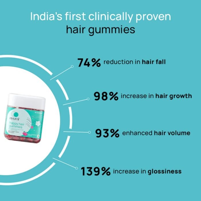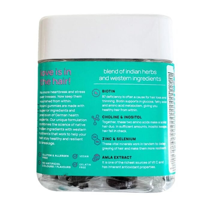 Nyumi Biotin Hair Gummies are a delicious and convenient way to support hair health. Formulated with high-potency Biotin, Amla, and Zinc, these gummies promote stronger, thicker, and shinier hair. Clinically proven and 100% vegan, they provide essential nutrients that help reduce hair fall, enhance hair growth, and improve overall hair appearance. Packed with natural ingredients, these gummies are an easy, tasty way to maintain healthy hair from the inside out.