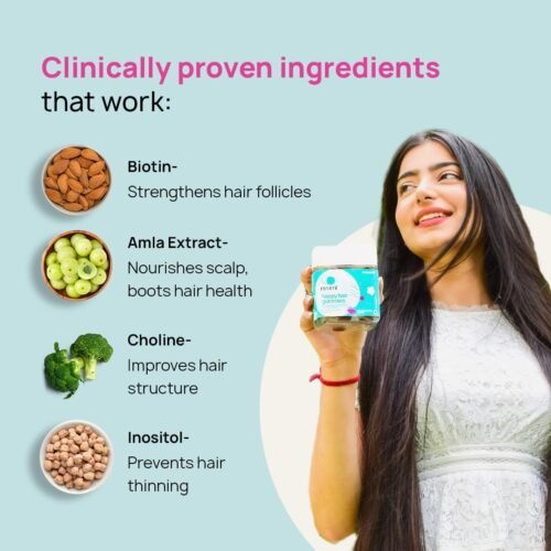- Promotes Hair Growth: High-potency biotin and Amla work together to stimulate hair follicles, encouraging faster and healthier hair growth.