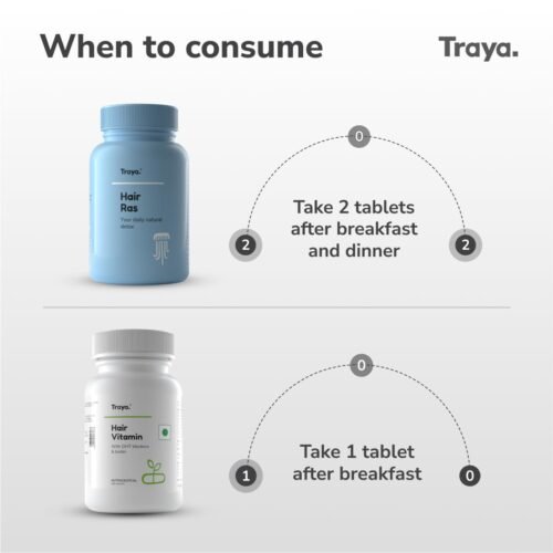 Traya Hair Growth Supplements Combo, Hair Ras (120 Tablets) + Hair Vitamins (30 Tablets) | 12 mcg Biotin & Ashwagandha Tablets for Healthy Hair