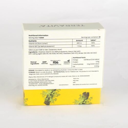 - Take the Next Step: Elevate your daily wellness routine with TERRAVITA Daily Vitamin D3 + Vitamin B12 Supplement. With its plant-based formulation and comprehensive benefits, it’s the perfect addition to support your overall health and vitality.