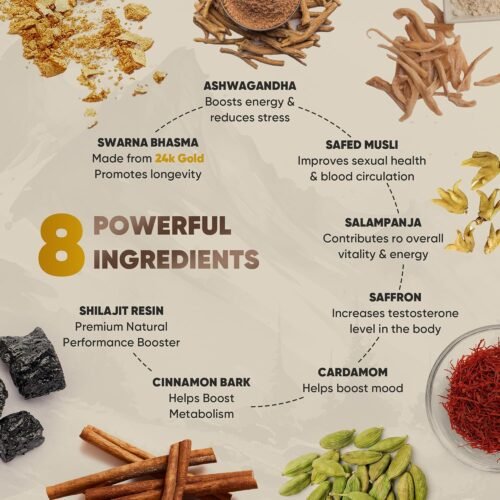 Infused with 24K Gold Leaf and powerful Ayurvedic herbs like Ashwagandha & Safed Musli