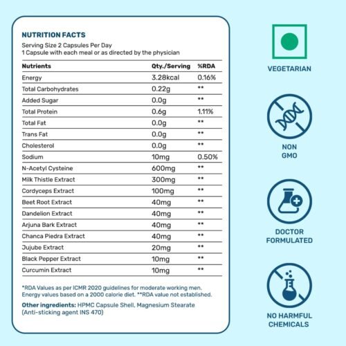 Contains powerful antioxidants: Milk Thistle & N-Acetyl Cysteine