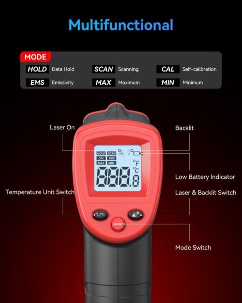 ✅ Laser Targeting System: Built-in laser pointer for precise aiming and more accurate temperature detection.