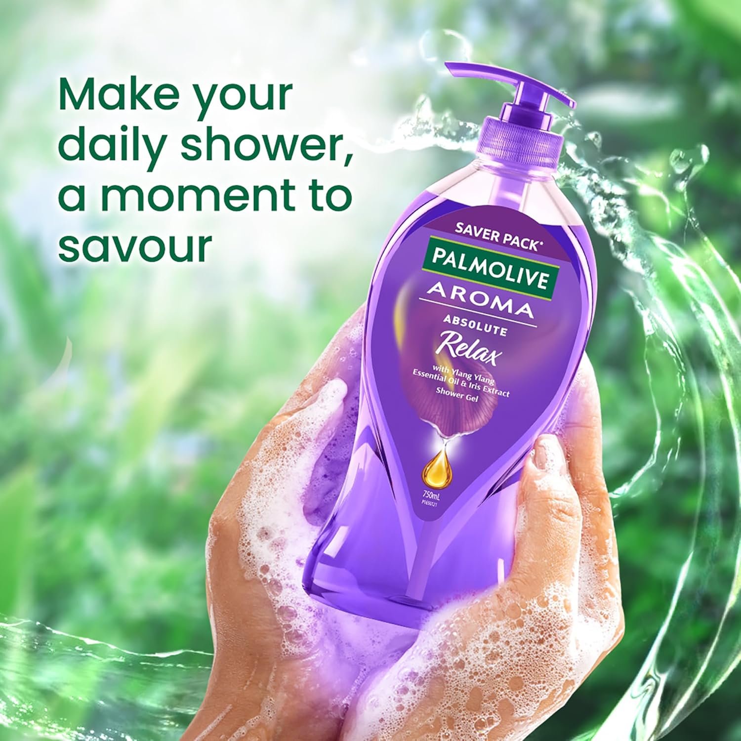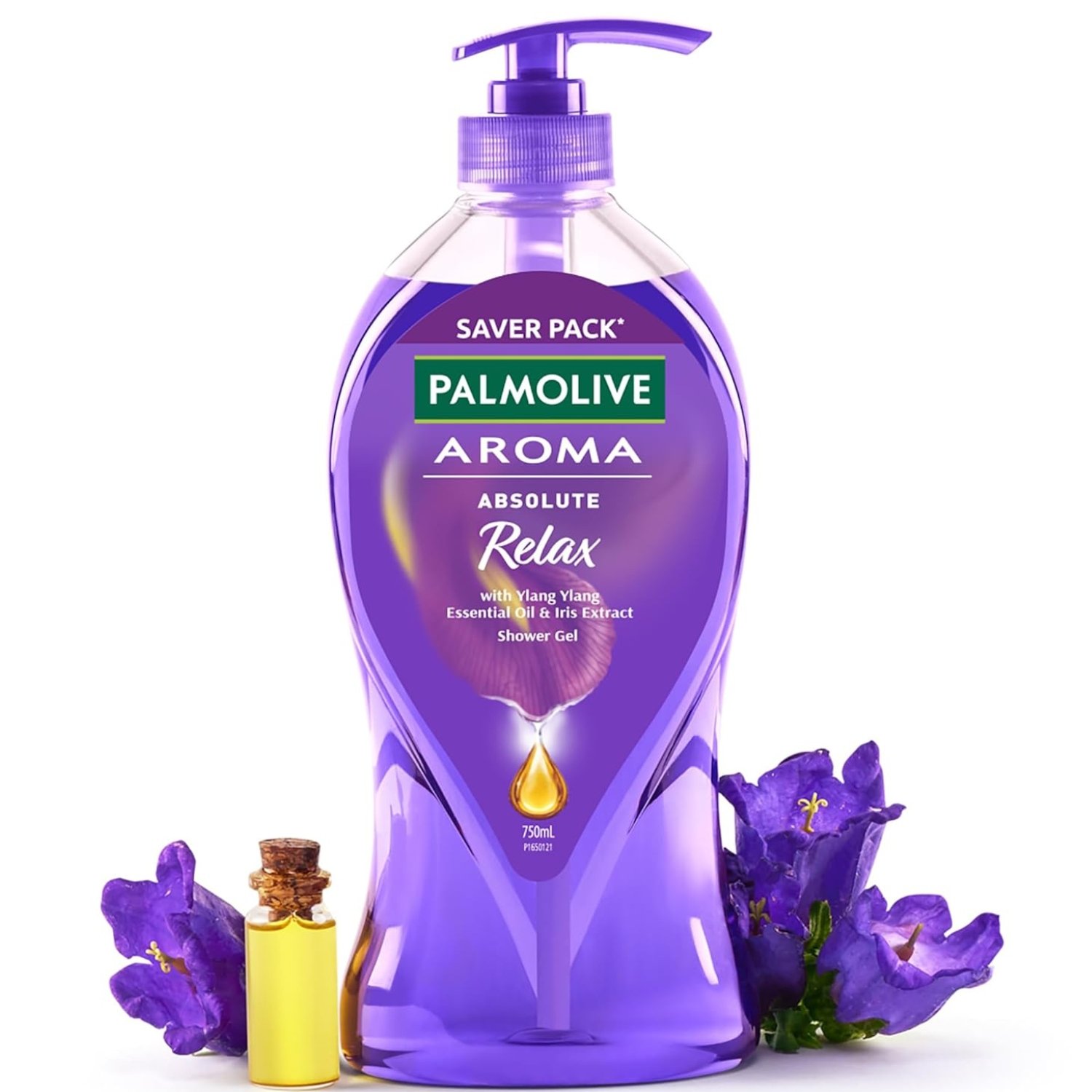 Palmolive Aroma Absolute Relax Body Wash For Women & Men, 750Ml Shower Gel Single Pump Bottle, 100% Natural Ylang Ylang Essential Oil & Iris For A Soft And Smooth Skin, Ph Balanced Bodywash