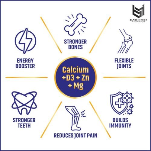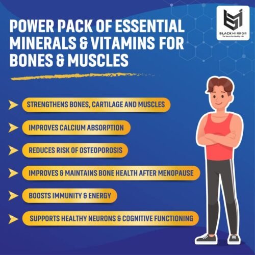 Black Mirror: Calcium, Vitamin D3, B12, Folic Acid, Magnesium, Boron, B1, B6 Supplements for Joint, Bone, Muscle, and Teeth Support – Designed for Men and Women | Pack of 1, 30 Capsules for Comprehensive Bone and Joint Care.