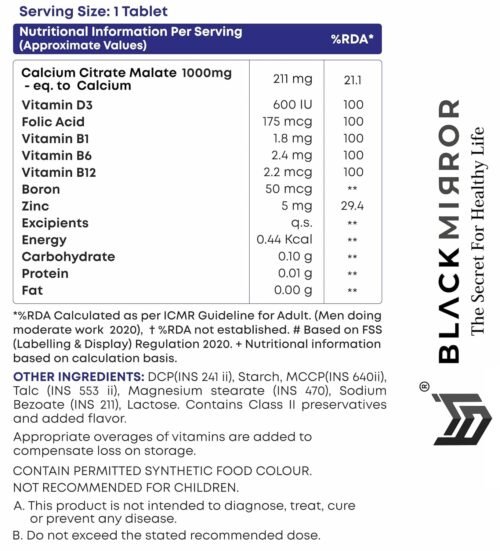 Calcium, Vitamin D3, B12, Folic Acid, Magnesium, Boron, B1, B6: Black Mirror’s Power-Packed Formula